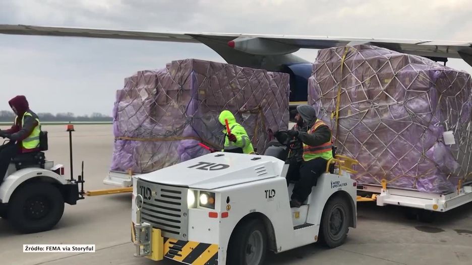 Na lotnisku w Culmbus w stanie Ohio wylądował samolot transportowy ze sprzętem medycznym dla amerykańskich szpitali. Na jego pokładzie znalazło się m.in. blisko 3 miliony maseczek chirurgicznych, 18650 strojów ochronnych, 170 tys. maseczek specjalistycznych oraz prawie 12 mln rękawiczek jednorazowych.