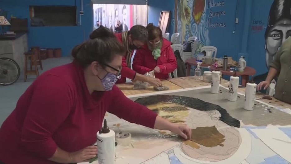 Argentyńscy artyści tworzą murale i mozaiki, poświęcone Diego Maradonie.