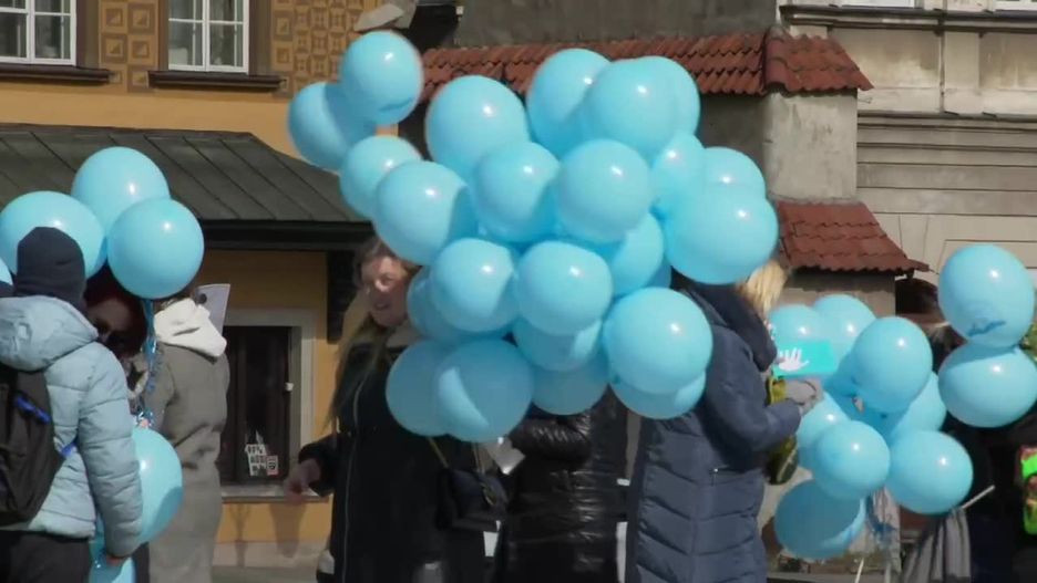 “Autyzm jest wśród nas”. Happening z niebieskimi balonami na placu Zamkowym w Warszawie