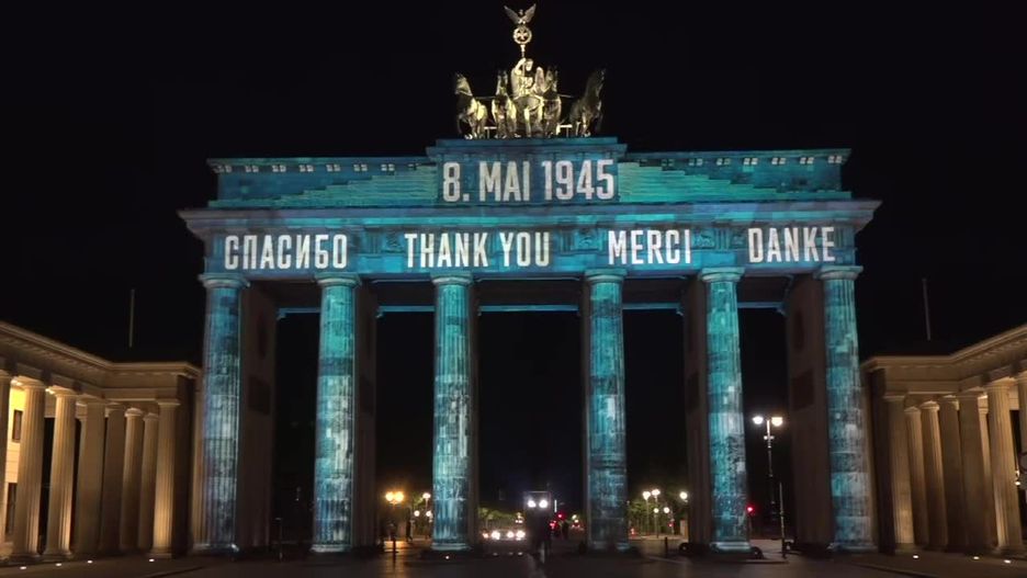 Na Bramie Brandenburskiej wyświetlono podziękowania w języku rosyjskim, angielskim, francuskim i niemieckim. W ten sposób stolica Niemiec uczciła 75. rocznicę zakończenia II wojny światowej w Europie.