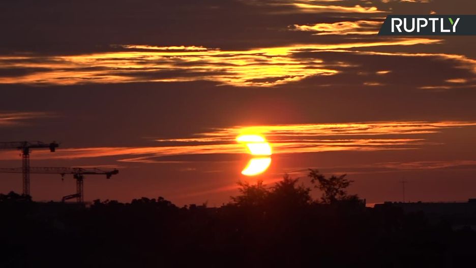 Częściowe zaćmienie wschodzącego słońca. Majestatyczny widok z Waszyngtonu