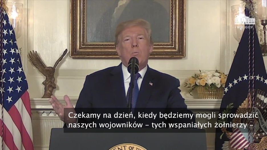 Drodzy Amerykanie, poleciłem siłom Stanów Zjednoczonych przeprowadzenie precyzyjnych ataków na cele związane z bronią chemiczną dyktatora Baszara al-Asada – ogłosił Donald Trump. Prezydent USA podziękował Francji i Wielkiej Brytanii za pomoc w przeprowadzeniu ostrzału.