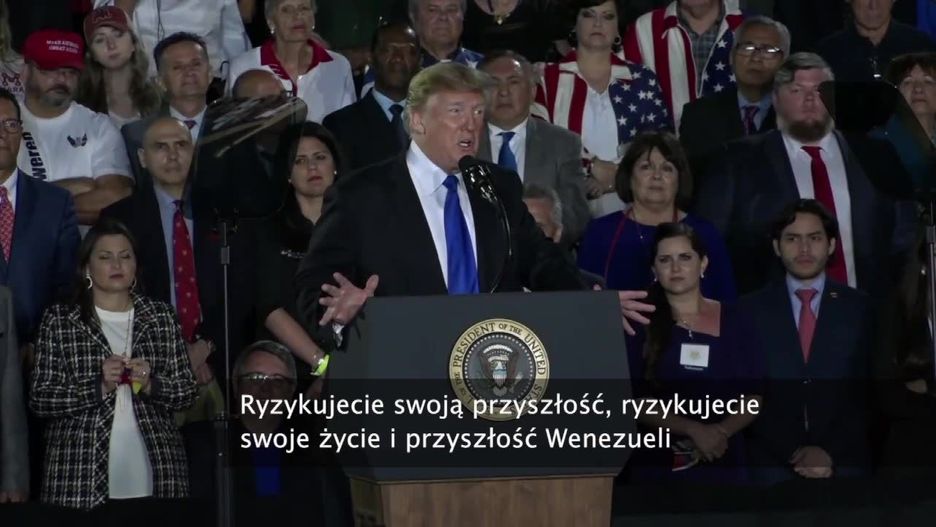Ryzykujecie swoją przyszłość, ryzykujecie swoje życia i przyszłość Wenezueli dla człowieka kontrolowanego przez kubańskich wojskowych i chronionego przez prywatną armię kubańskich żołnierzy. Maduro nie jest wenezuelskim patriotą, jest kubańską marionetką. Tym właśnie jest - podkreślił Donald Trump.