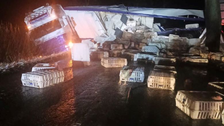 Do poważnego zdarzenia drogowego doszło w nocy w miejscowości Stary Dzierzgoń. Ciężarówka przewożąca kury wypadła z drogi i przewróciła się na bok. Kierujący ciężarówką 38-letni mężczyzna został ukarany mandatem karnym.