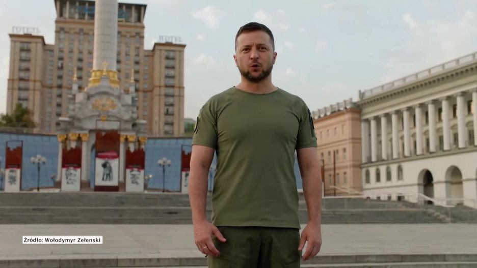 Zełenski wygłosił przemówienie przed pomnikiem niepodległości w Kijowie. Na nagraniu widać puste ulice centrum stolicy. Jak zauważa Reuters, to prawdopodobnie efekt ostrzeżeń przed rosyjskimi prowokacjami z powodu święta.
