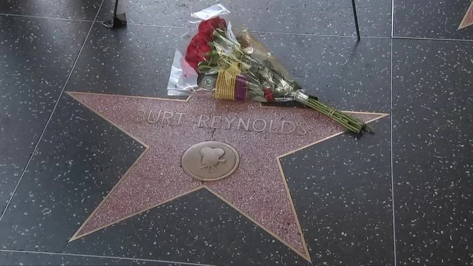Fani składają kwiaty przy gwieździe Burta Reynoldsa