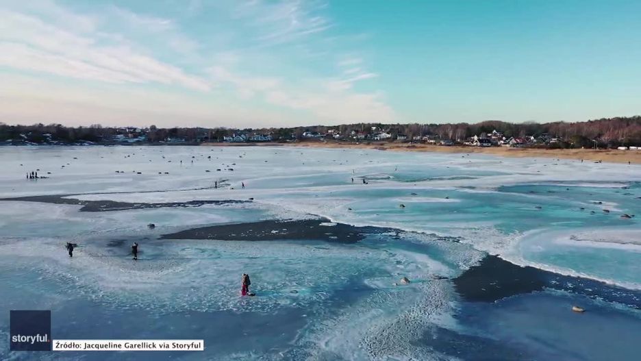 Tak jest też w Szwecji, gdzie jedna z zatoczek w pobliżu miasta Frillesas całkowicie zamarzła i utworzyła naturalne lodowisko. Natychmiast skorzystali z tego miejscowi, którzy wyszli na zamarznięte morze, by pospacerować, pojeździć na łyżwach lub pograć w hokeja.