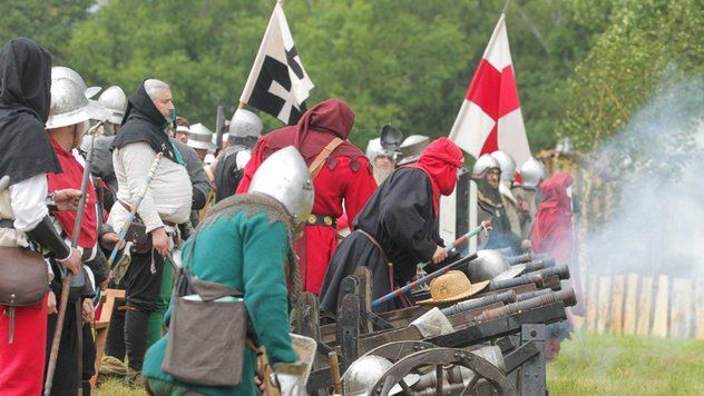 Wraz z rozpoczęciem bitwy zaczął padać intensywny deszcz. Widzowie rozłożyli parasole, co utrudniało stojącym dalej oglądanie widowiska. Między oglądającymi wybuchały na tym tle spory.