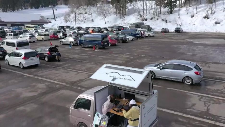 Japońscy pracownicy testują samochody umożliwiające pracę zdalną. Furgonetki wyposażone są w Wi-Fi, Bluetooth, koce elektryczne i inne udogodnienia. Mobilna stacja robocza jest przeznaczona dla miłośników sportów zimowych. Eksperyment jest realizowany w ramach współpracujący firm technologicznych.