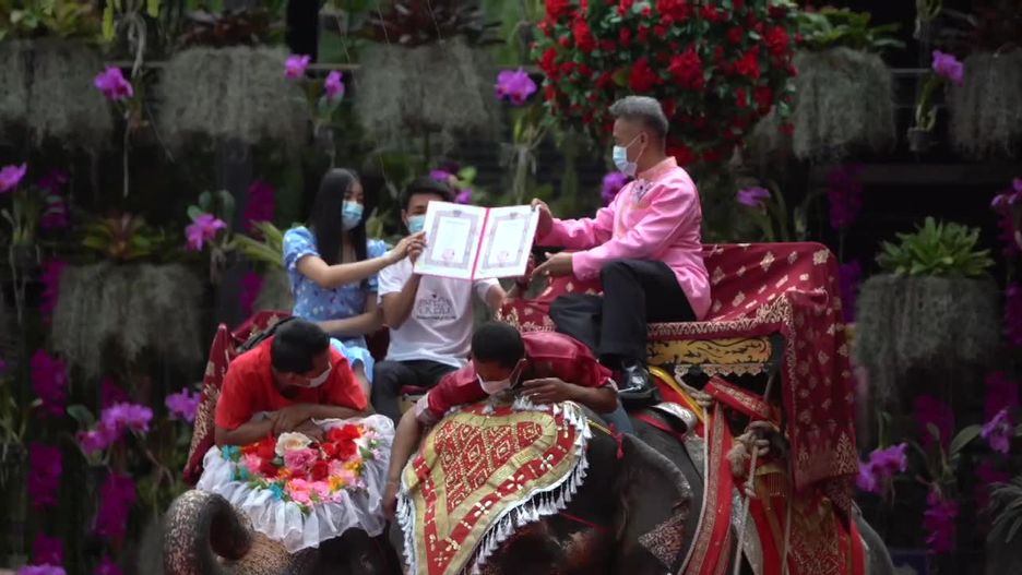 Kilkadziesiąt par wzięło ślub na grzbietach słoni podczas wyjątkowego dnia zakochanych w Tajlandii. Nowożeńcy otrzymywali certyfikaty ślubu siedząc na specjalnie udekorowanych zwierzętach.
