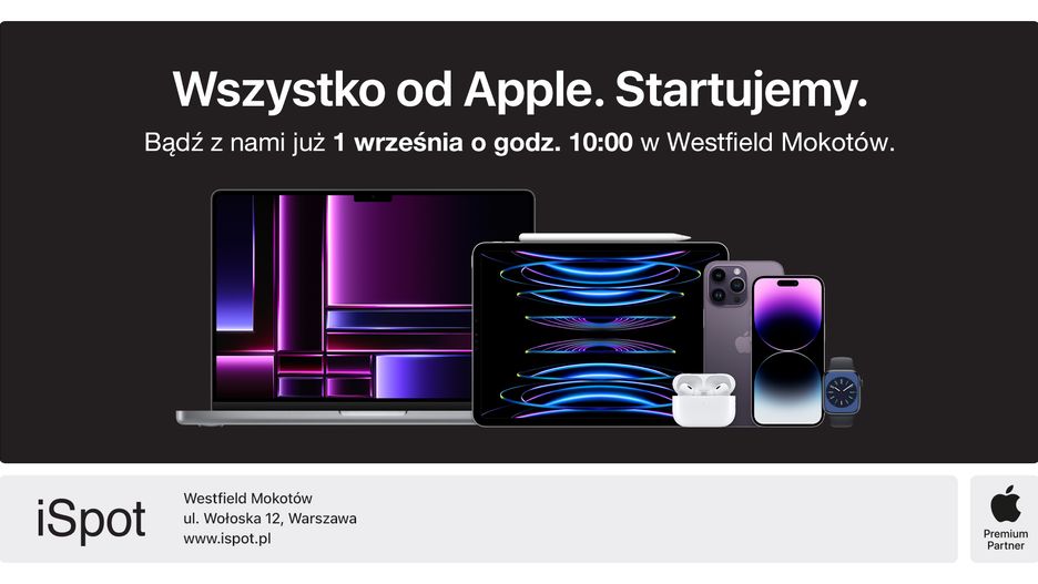 Miłośnicy technologii, zwłaszcza tych od Apple, mają powód do świętowania – już niebawem na mapie Warszawy pojawi się nowy salon iSpot o statusie Apple Premium Partner! Otwarcie salonu odbędzie się w piątek, 1 września o godzinie 10:00 w centrum handlowym Westfield Mokotów. Z tej okazji iSpot przygotował liczne atrakcje, w tym wyjątkowe promocje na produkty Apple.