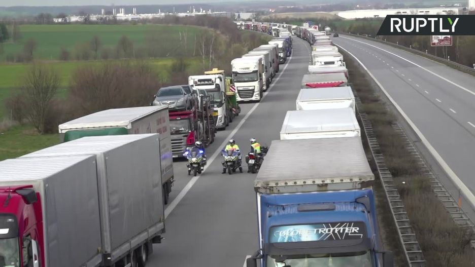 Korki na granicy niemiecko-polskiej. Żołnierze rozdają prowiant kierowcom ciężarówek