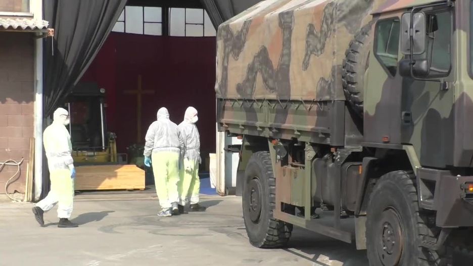 Włoski konwój wojskowy przetransportował około 30 trumien z ciałami COVID-19 z miasteczka Ponte San Pietro pod Bergamo. Trafiły one tam z okolicznych miast, które nie miały możliwości przechowania znacznej ilości ciał, ani skremowania ich.