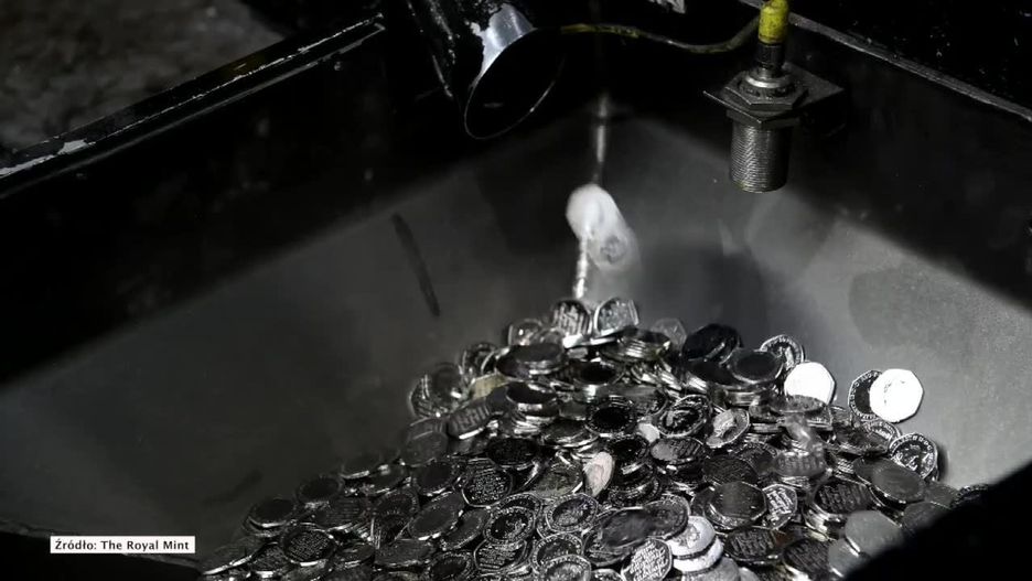 Na nagraniu widać proces bicia monety w mennicy w Llantrisant, w południowej Walii.