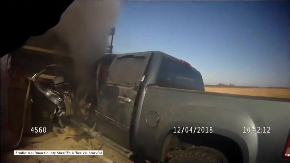 Zdarzenie nagrała kamera zastępcy szeryfa hrabstwa Kaufman, Connera Martina. Na nagraniu widać grupę ludzi próbujących pomóc mężczyźnie, który utknął w swoim samochodzie, którym wjechał w naczepę tira.