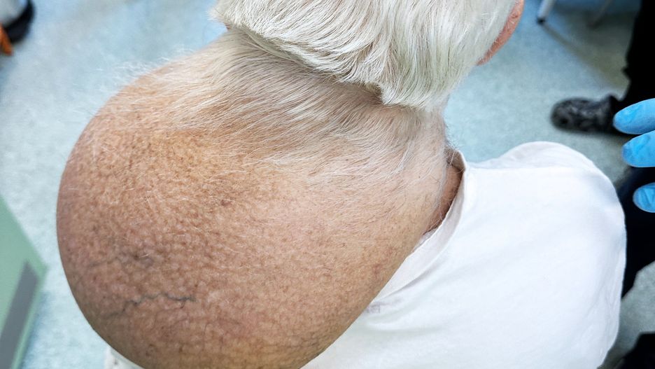 Zmiana o wymiarach około 36 x 25 cm rozwijała się przez długi czas, jednak pacjent przez lata nie decydował się na konsultację lekarską. Dopiero kiedy guz osiągnął ogromne rozmiary i zaczął poważnie utrudniać codzienne funkcjonowanie, zgłosił się do szpitala.