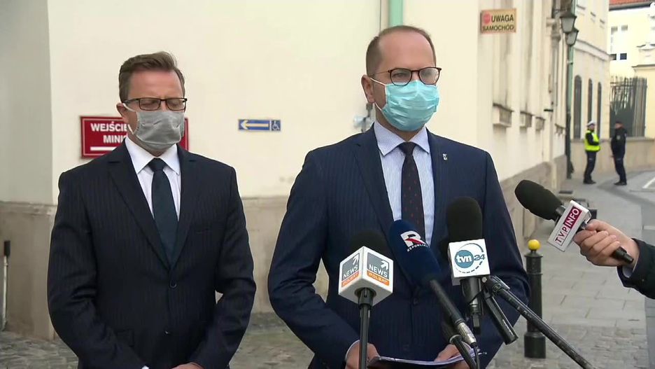 Dostaliśmy potwierdzenie, że rzecznik prasowy ministerstwa zdrowia, dyrektor biura administracyjnego, dyrektor biura ministra, dyrektor generalna, przyznali sobie jednorazowe nagrody w wysokości dwumiesięcznego wynagrodzenia brutto. Nie mamy respiratorów, nie mamy strategii, ale mamy nagrody - stwierdził z oburzeniem Michał Szczerba.