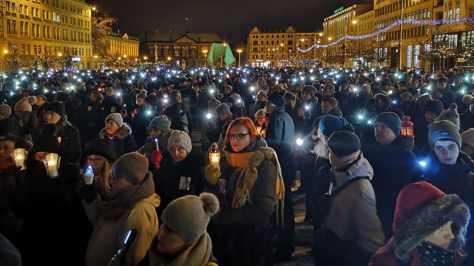 Na Placu Wolności w Poznaniu odbywa się akcja #światełkomyślami z Pawłem Adamowiczem