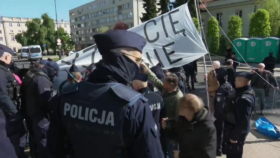 W pewnym momencie grupa policjantów podeszła do demonstrantów. Jednemu z mężczyzn wyrwano megafon. Inna osoba została przewróciła się na ziemię lub została powalona. Szybko otoczyli ją mundurowi. Doszło do przepychanki. Ktoś krzyczał: przestańcie bić ludzi!