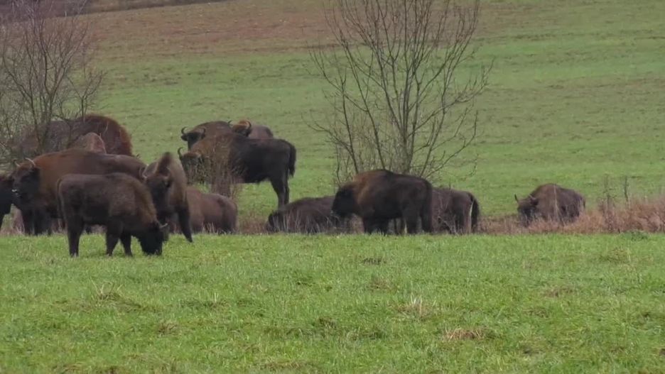 Około 80 żubrów pasło się przy drodze na Podlasiu