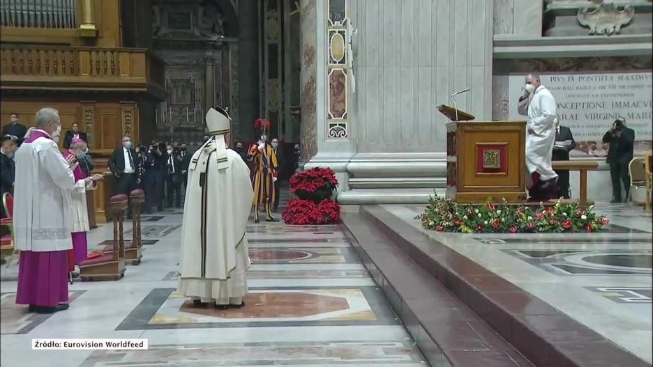 Papież Franciszek odprawił pasterkę w bazylice Świętego Piotra. Z powodu obostrzeń uczestniczyło w niej znacznie mniej osób niż zwykle
