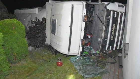 Kierowca cieżarówki przewożącej cement w nocy z czwartku na piątek ok godz. 1 jechał we wsi Polichna w pobliżu Kraśnika (woj. lubelskie). Na zakręcie przejechał przez bariery ochronne i uderzył w niezamieszkały dom. Po uderzeniu pojazd przejechał przez ogródek sąsiedniej posesji, gdzie ściął słup energetyczny, przewrócił się na bok i uderzył w kolejny dom, w którym przebywała kobieta. Na szczęście nikt nie doznał obrażeń, ale samochód uszkodził elewację budynku.