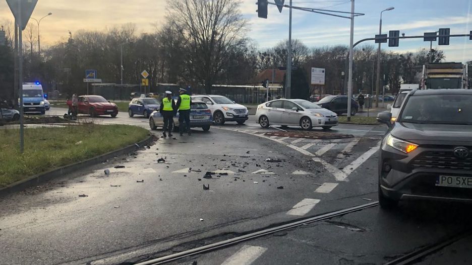 Pościg policji zakończony wypadkiem na skrzyżowaniu Warszawskiej i Św. Michała w Poznaniu