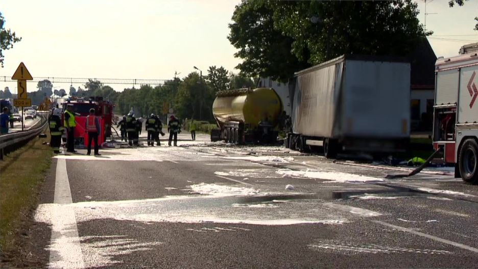 Pożar po zderzeniu dwóch ciężarówek w Wielkopolsce. Kierowca zginął na miejscu