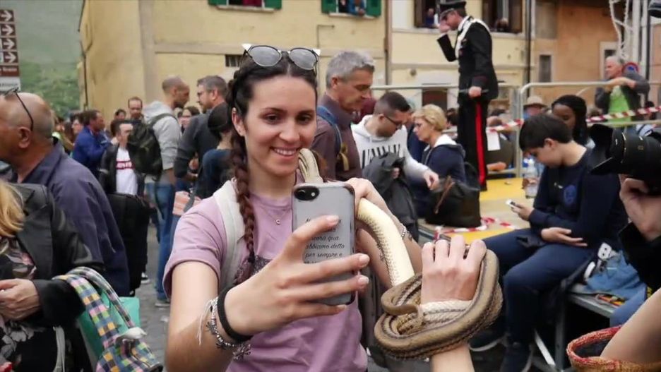 W Cucullo we Włoszech miała miejsce niecodzienna procesja z udziałem węży, na cześć uleczenia dziecka pokąsanego przez węże.
