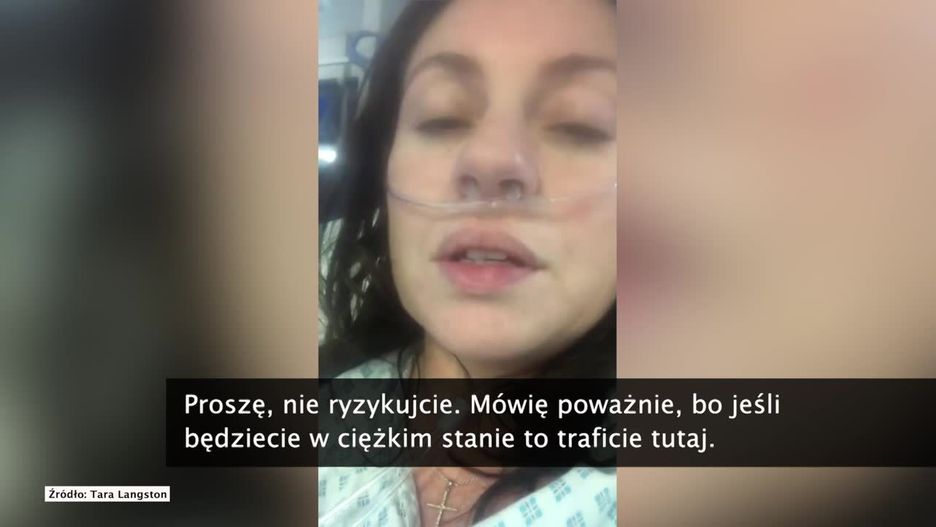 Jeśli ktokolwiek chciałby zaryzykować, niech spojrzy na mnie. Jestem teraz na oddziale intensywnej terapii, nie mogę oddychać bez tego. Musieli wszyć to w moją tętnicę. Tutaj mam jeden wenflon, tutaj drugi, a także założono mi cewnik. A i tak czuję się teraz dziesięć razy lepiej niż wcześniej, nawet nie wiem kiedy, bo straciłam rachubę dni - mówi Tara Langston pokazując swoje ręce w aparaturze medycznej.