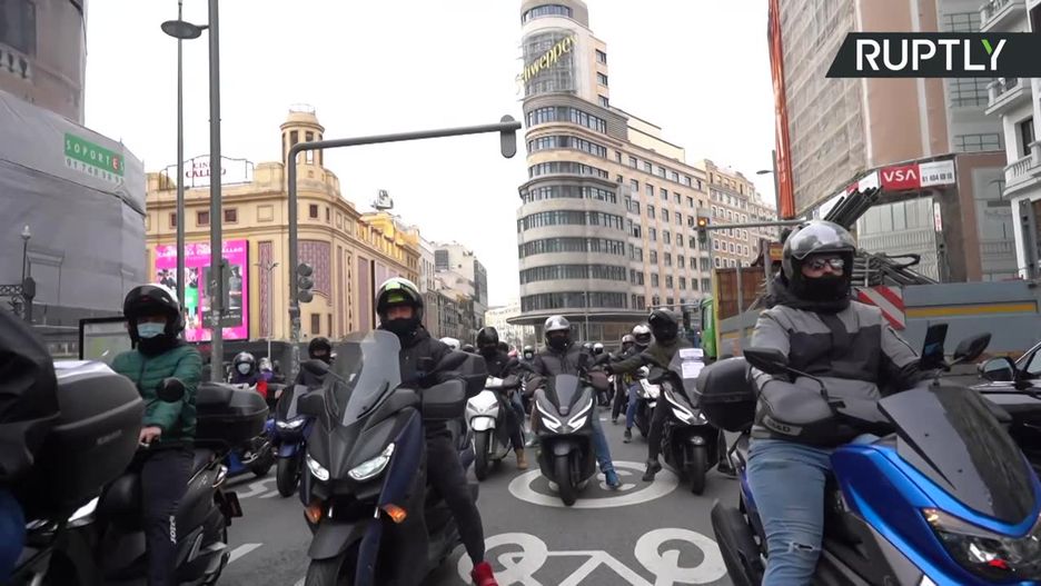 Setki dostawców jedzenia pracujących dzięki aplikacjom mobilnym protestowało w Madrycie przeciwko rządowym planom wprowadzenia regulacji prawnych dotyczących tego sektora.