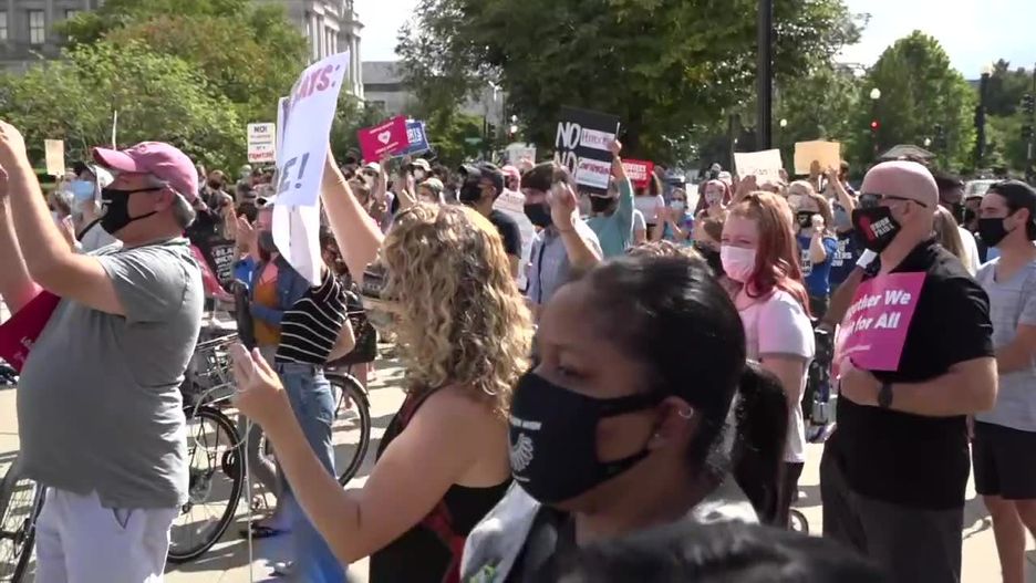W niedzielę (28.09) przed budynkiem Sądu Najwyższego USA w Waszyngtonie protestowali przeciwnicy jej nominacji, którzy wzywali do wstrzymania się z powołaniem następczyni Ruth Bader Ginsburg do czasu inauguracji kolejnej kadencji prezydenckiej w styczniu 2021 r.