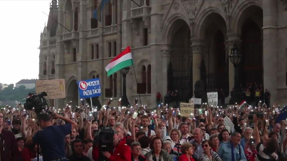 Pierwszemu posiedzeniu nowej kadencji węgierskiego parlamentu towarzyszył protest przeciwników partii rządzącej i przeciwko Viktorowi Orbanowi . Demonstranci przynieśli żółte kwiaty oraz flagi Unii Europejskiej