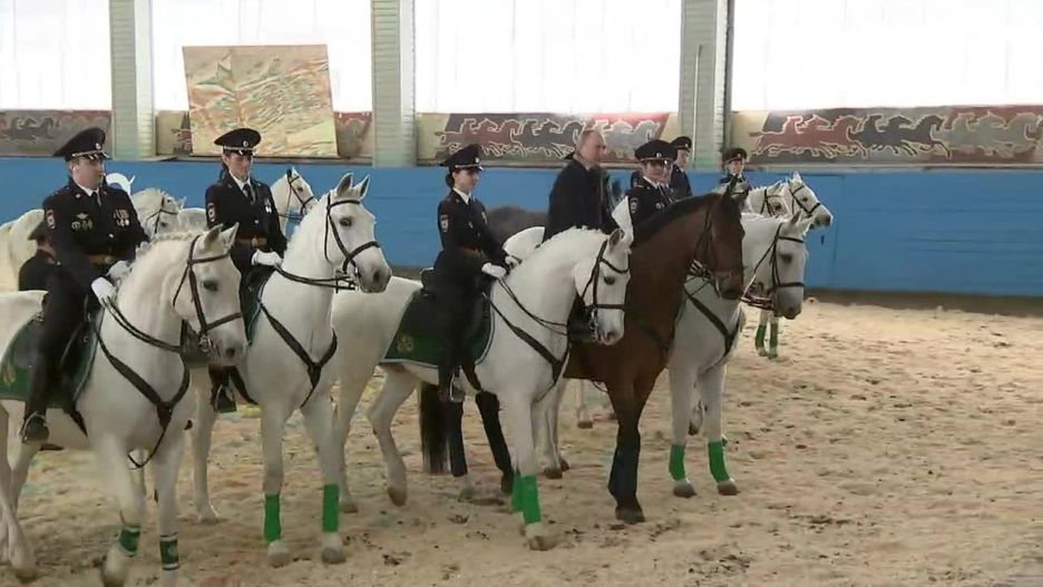 Przed Dniem Kobiet W. Putin odwiedził moskiewskie służby konne. Jedna trzecia policyjnego pułku to kobiety