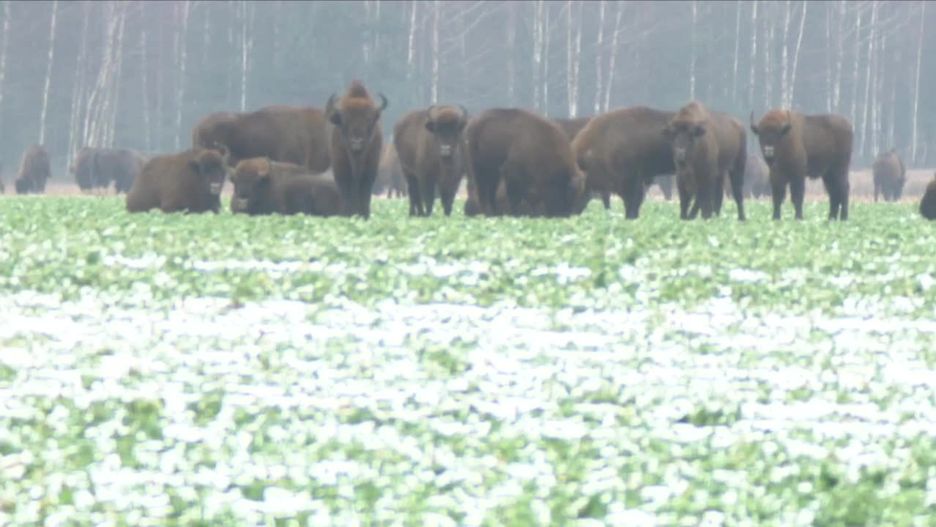 Około czterdziestu żubrów spacerowało na łące w okolicach Hajnówki (woj. podlaskie), gdy reporter TVN24 Mateusz Grzymkowski przejeżdżał tędy w drodze na reportaż. Zgodnie z danymi na dzień 31 grudnia 2021 roku w polskiej części Puszczy Białowieskiej bytowało na wolności 779 osobników.
