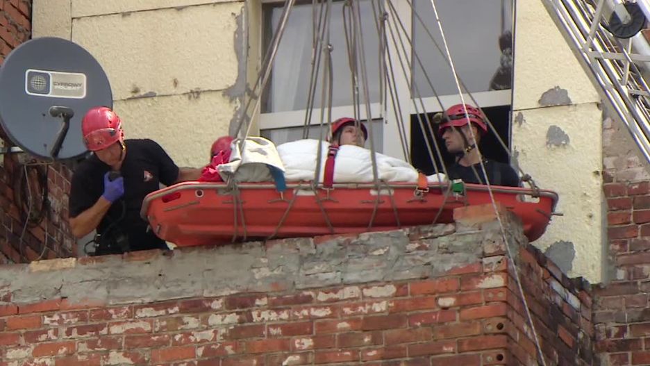 Jedyną możliwością była ewakuacja przy pomocy technik alpinistycznych przez balkon - przyznał strażak.