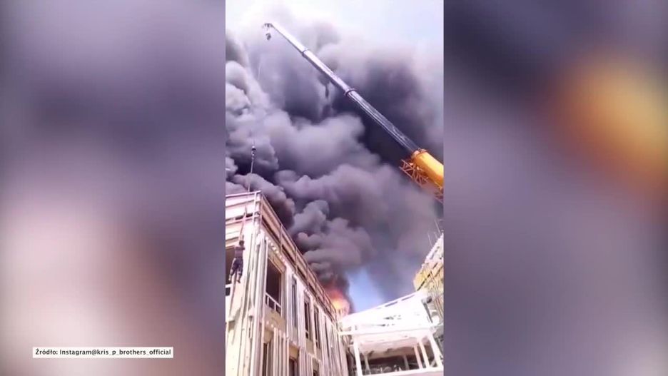 Duży pożar wybuchł na budowie szkoły w Ałmatach w Kazachstanie. Płomienie odcięły drogę ucieczki robotnikowi, który pracował na dachu. Do akcji ratunkowej wykorzystano pracujący na miejscu dźwig. Robotnik chwycił linę, a operator urządzenia opuścił go na ziemię.