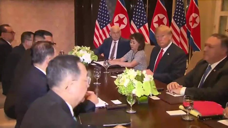 Donald Trump i Kim Dzong Un spotkali się w Singapurze. Po uściśnięciu dłoni i rozmowie w cztery oczy, prezydent USA i przywódca Korei Północnej zasiedli do negocjacji w towarzystwie członków obu delegacji.