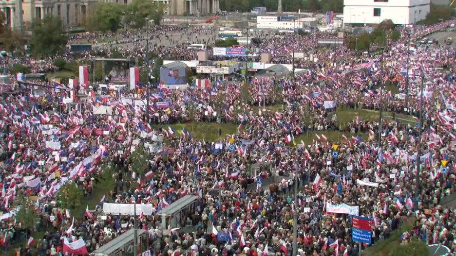 Na objazdy skierowano autobusy i tramwaje. Marsz wyruszy z ronda Dmowskiego po przemówieniach liderów, m.in. Donalda Tuska, Rafała Trzaskowskiego, Włodzimierza Czarzastego i Roberta Biedronia. – Ten marsz jeszcze się nie zaczął, a jest już nas prawie milion. Będziemy szli Marszałkowską i wtedy Polska i Europa zobaczą, ilu nas dzisiaj jest. Niewyobrażalne tłumy – powiedział Donald Tusk w wystąpieniu.