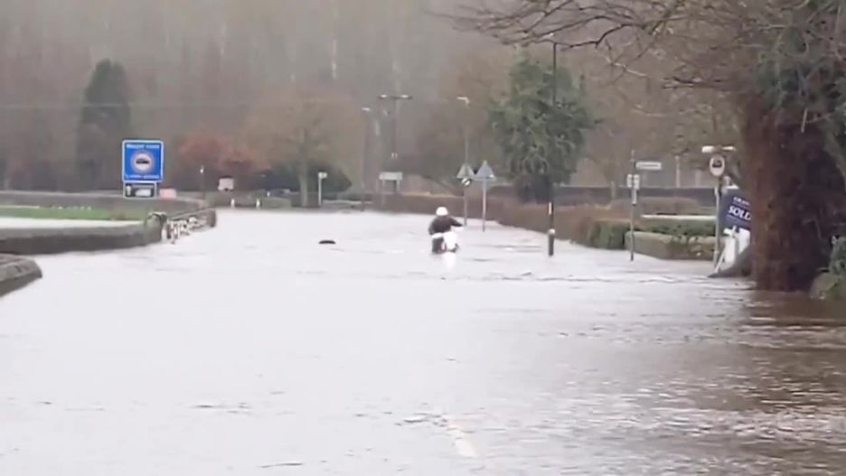 Sztorm Dennis i silny wiatr cały czas przetacza się przez Wyspy Brytyjskie. Spowodował on już między innymi poważne utrudnienia komunikacyjne. W miejscowości Derbyshire został zamknięty most, co zmusiło kierowcę motocykla do poszukiwania objazdu w wysokiej wodzie.