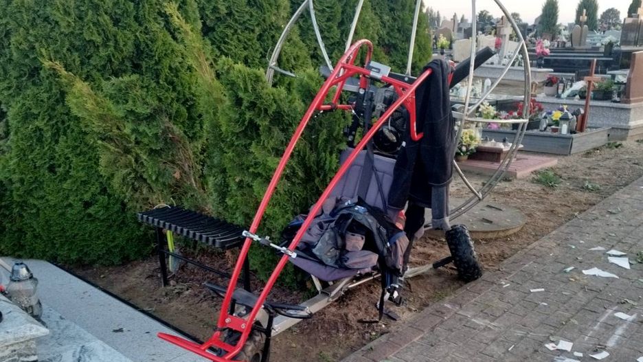Tragiczny wypadek motoparalotni w Sędzinie. 64-letni pilot zginął po upadku na cmentarz