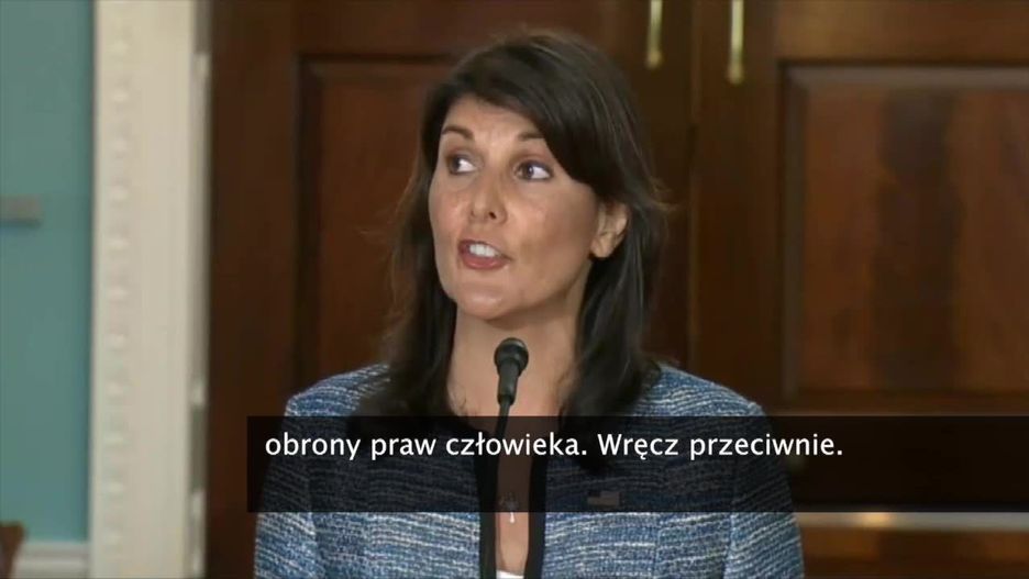 Jednocześnie chcemy mocno podkreślić, że nie rezygnujemy z zaangażowania w kwestię obrony praw człowieka. Wręcz przeciwnie - zapowiedziała Haley.