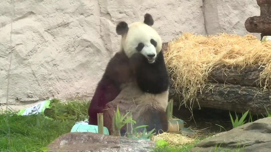 Para otrzymała prezenty w postaci specjalnych lodowych ciast z kawałkami marchewki, bambusa i jabłek, ozdobione liczbami odpowiadającymi wiekowi – samica Ding skończyła dwa lata, a samiec Ru trzy.