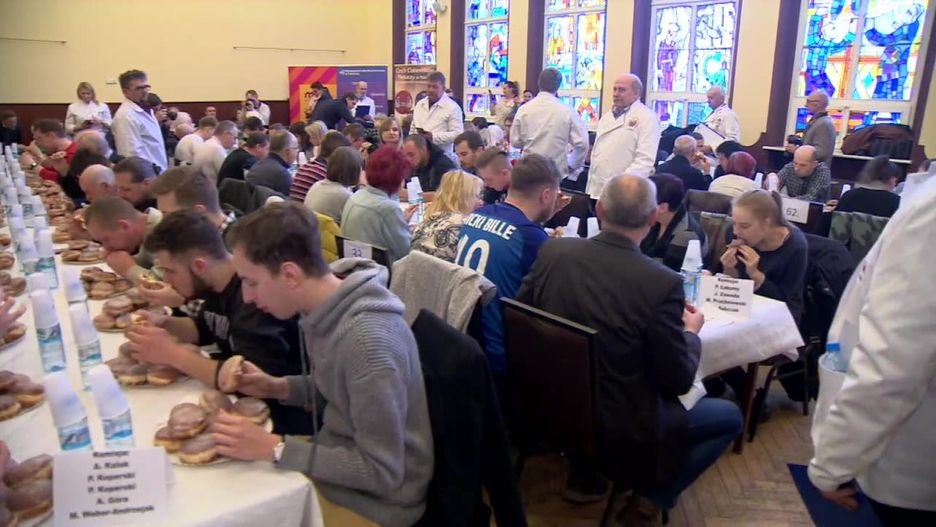 Z okazji zbliżającego się Tłustego Czwartku w Poznaniu po raz 16. odbyły się mistrzostwa w jedzeniu pączków na czas. Zasady są proste – wygrywa uczestnik, który zje jak najszybciej 10 pączków bez popijania wodą.