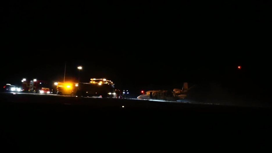 Prywatny samolot z ekipą amerykańskiej supergwiazdy Pink na pokładzie, w tym jej managerem, rozbił się podczas lądowania na lotnisku w Aarhus. Materiał filmowy pokazuje strażaków walczących z pożarem na miejscu katastrofy.
