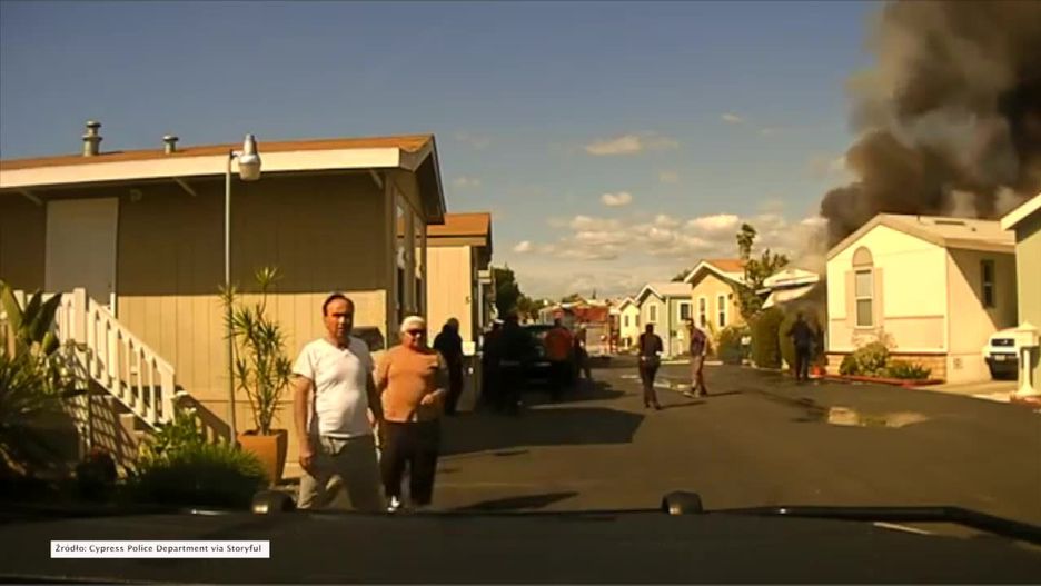 Policjanci uratowali 50-letniego mężczyznę z pożaru, który wybuchł na osiedlu mobilnych domów w Los Angeles. Funkcjonariusze wyprowadzili 50-latka chwilę przed wybuchem płonącego budynku. Poszkodowany został przewieziony do szpitala. Doznał ciężkich poparzeń.