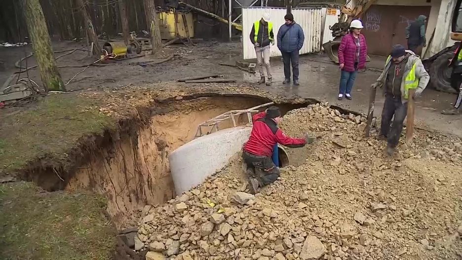Aby zabezpieczyć teren, gdzie powstają zapadliska, rozpoczęto prace stabilizujące grunt przy osiedlu Gaj w Trzebini. Do odwiertów była wtłaczana mieszanina cementu i popiołów, które mają wypełniać pustki i rozluźnienia gruntu. Mimo to wciąż pojawiają się nowe zapadliska, co świadczy o tym, że problem jest poważny i wymaga dalszych działań.