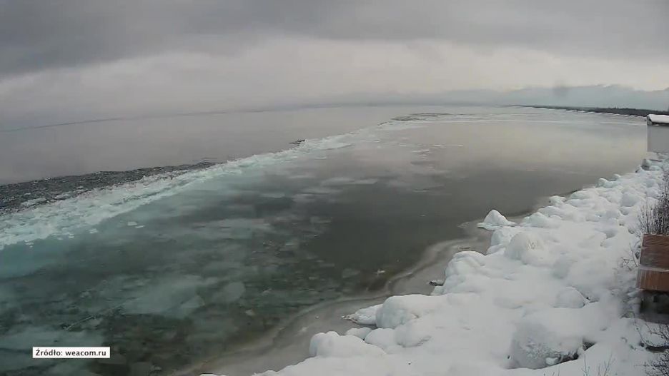 Jezioro Bajkał skuł lód. Kamera w okolicy wsi Wydrino na południowym brzegu jeziora zarejestrowała powolny proces tworzenia się lodu.