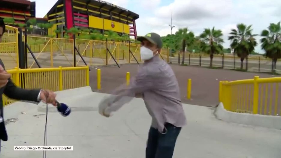 Chwile grozy przeżyli reporter i operator kamery ekwadorskiej telewizji DirecTV Sports. Podczas nagrania zostali zaatakowani przez mężczyznę, który celując do nich z broni, zażądał oddania telefonów komórkowych.